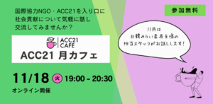 11/18オンライン開催【ACC21 月カフェ】ACC21の取り組みを入り口に国際協力・社会貢献について考えるオンライン交流会
